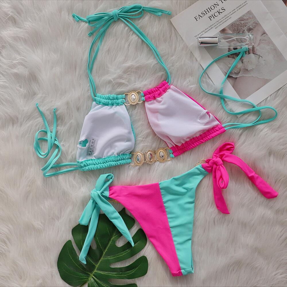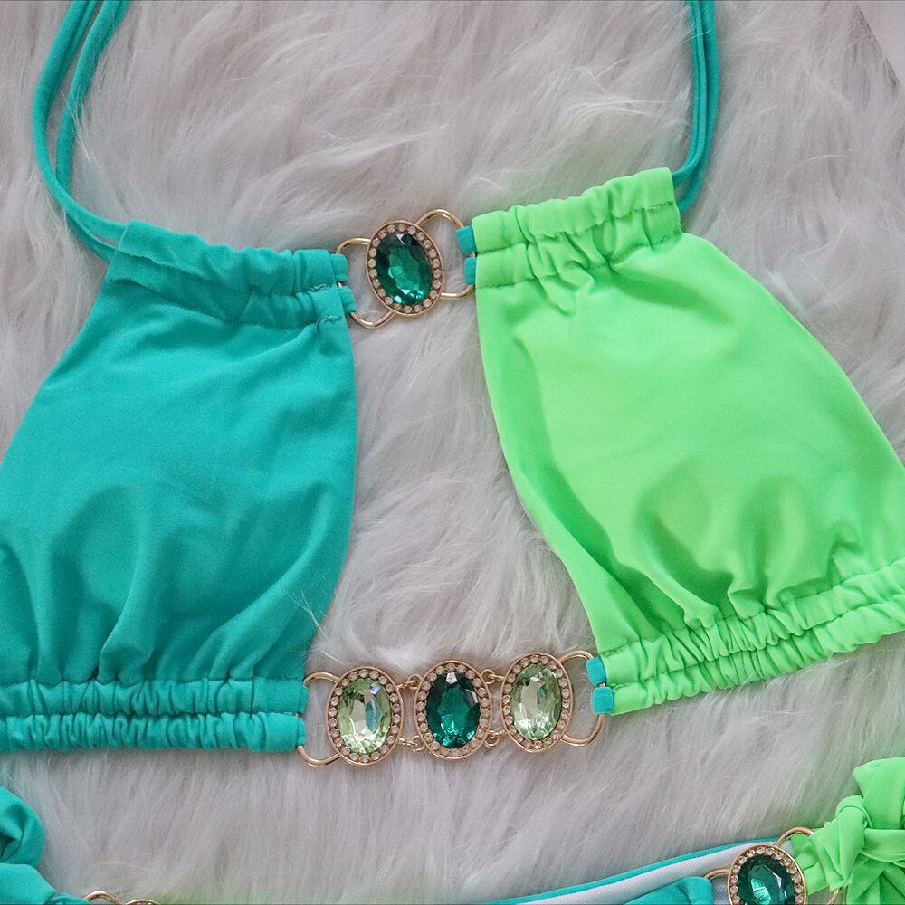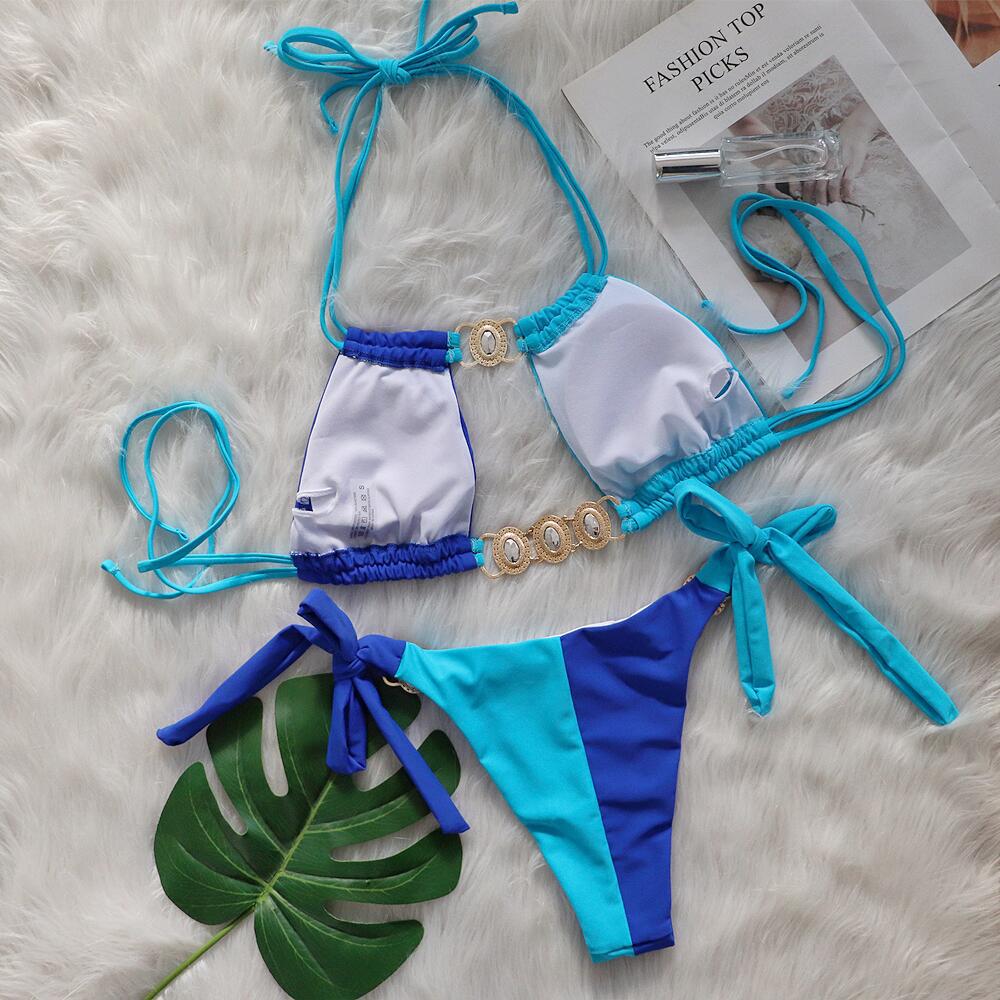 Baizi Crystal Diamond Bikini Sexy Patchwork Strap Women Split Swimsuit