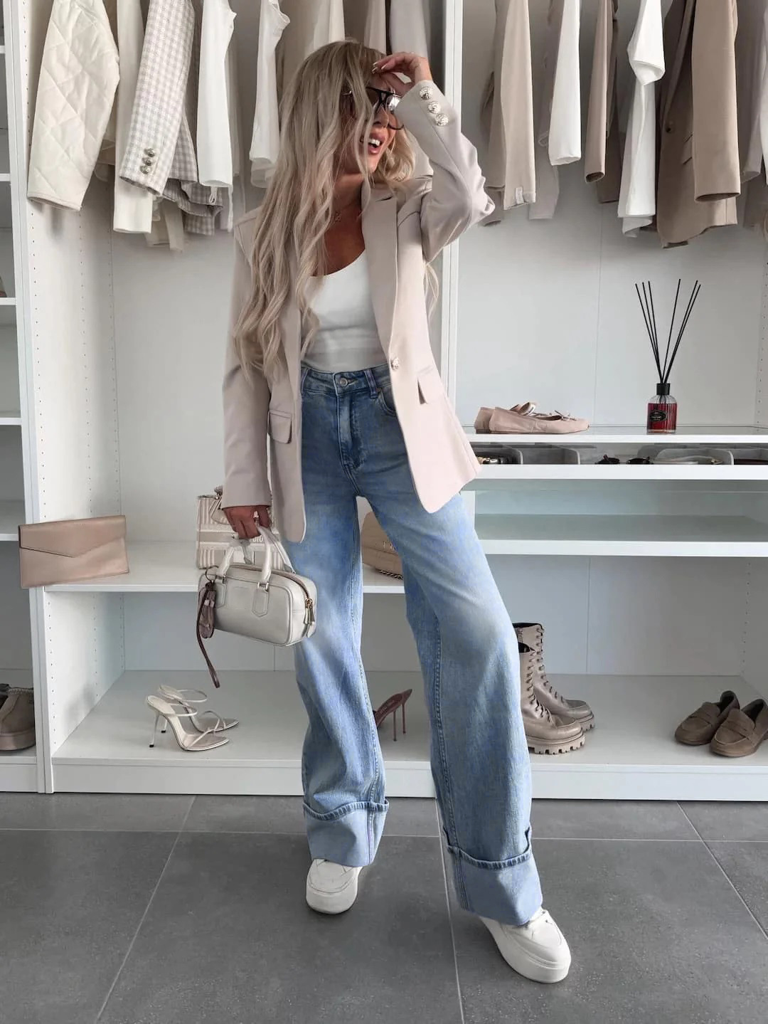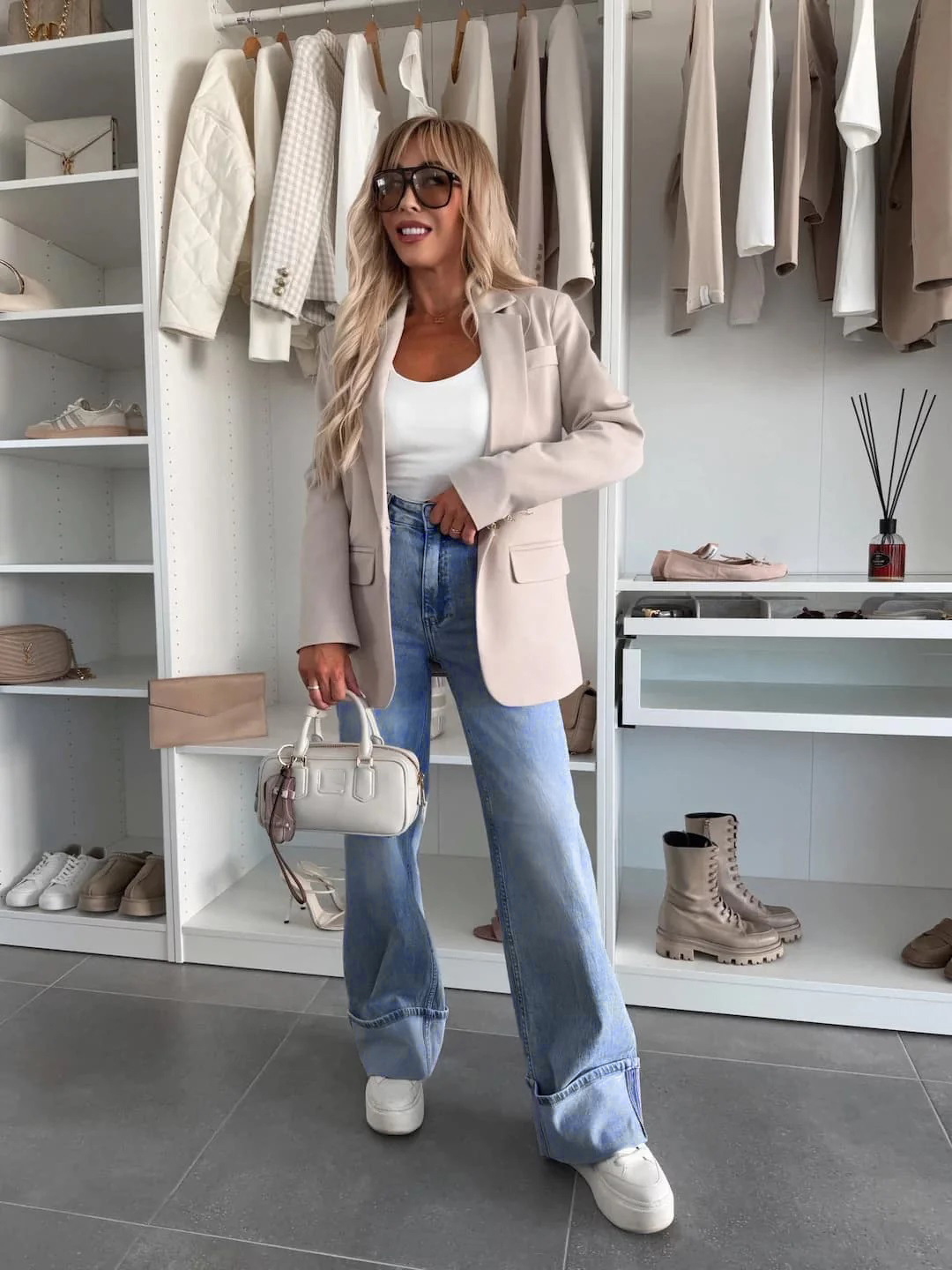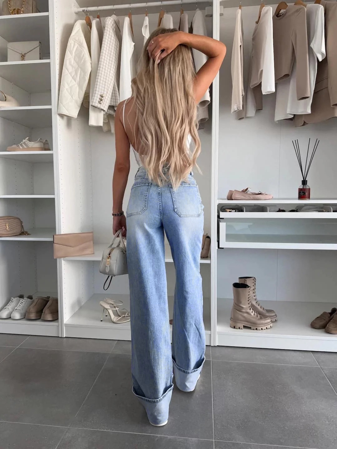 Ladies Micro Elastic Denim Back Foot Straight Slim Wide Leg Trousers
