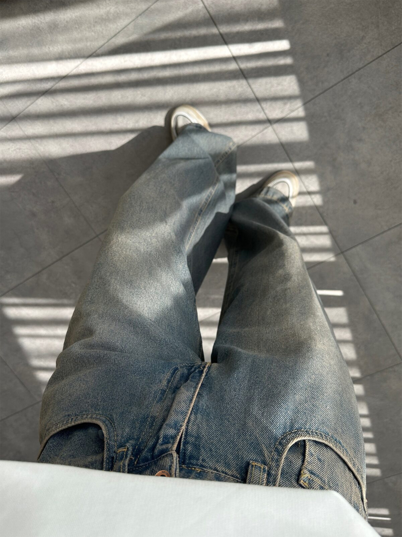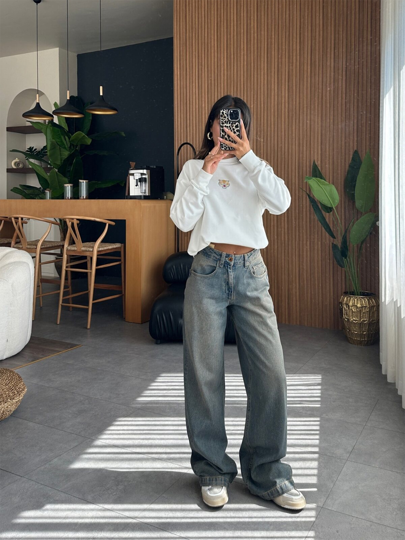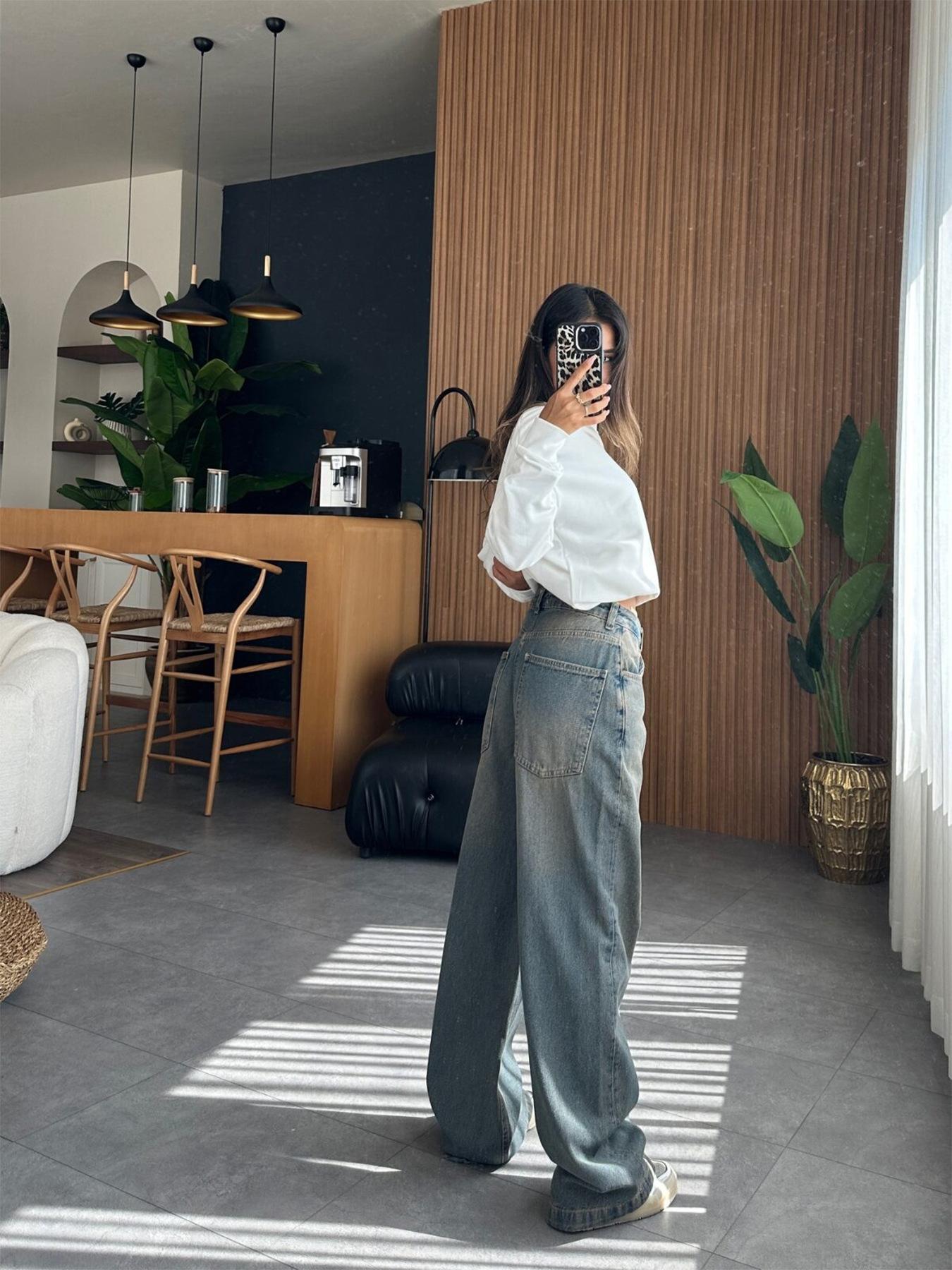 Ladies Retro Micro Elastic Heavy Industry Wash Straight Wide Leg Loose Denim Trousers