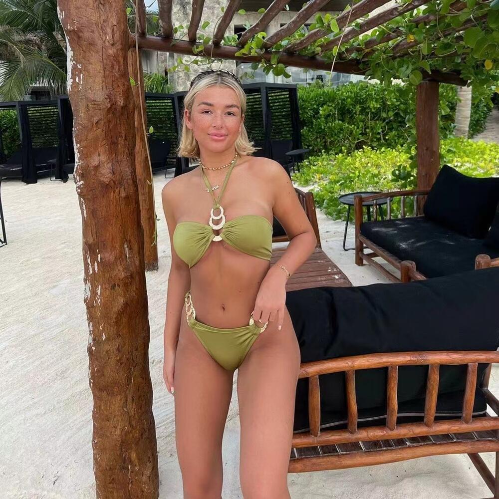 New Sexy Swimsuit Metal Accessories Hollow Out Cutout Bikini Solid Color Tube-Top Strap Women Swimsuit