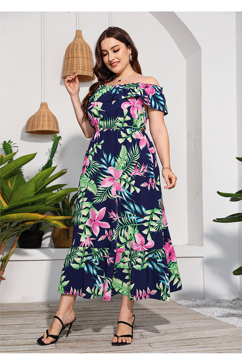 Plus Size Beach Holiday Long Beach Dress off the Neck Tube Top Color Printed Dress