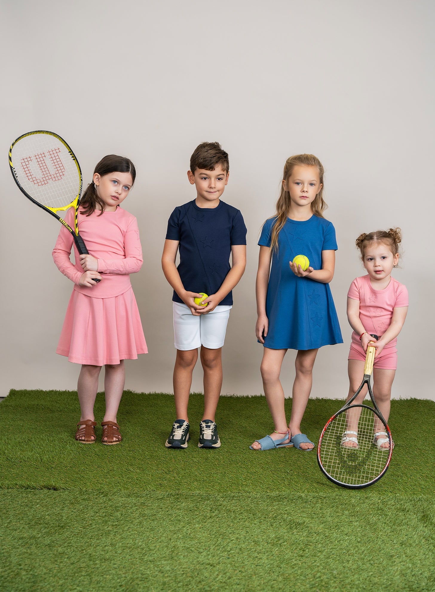 Girls fine rib stars applique flare dress.3/4 sleeves from size 5 and up. ֲ