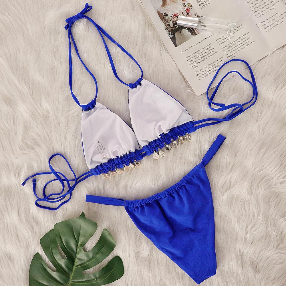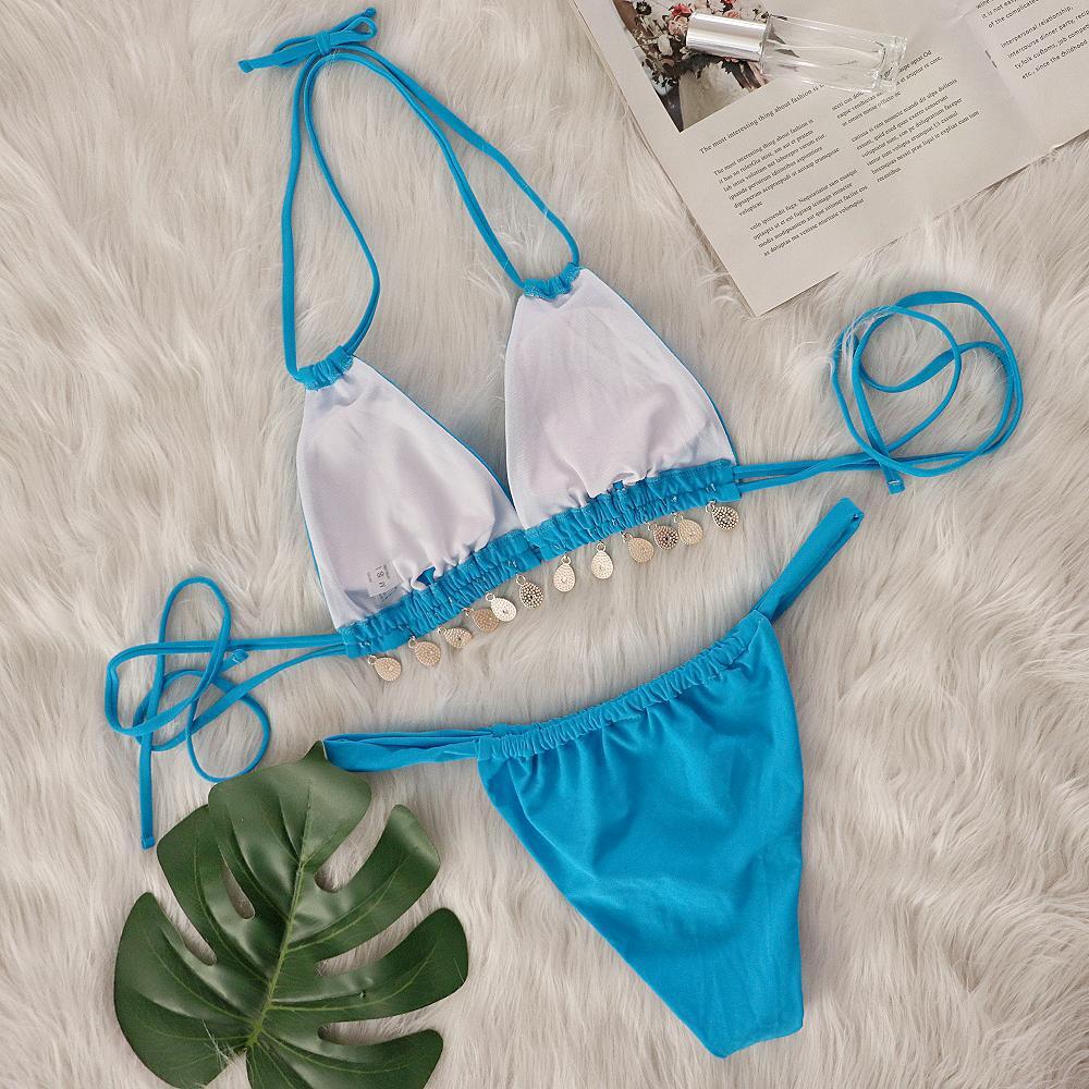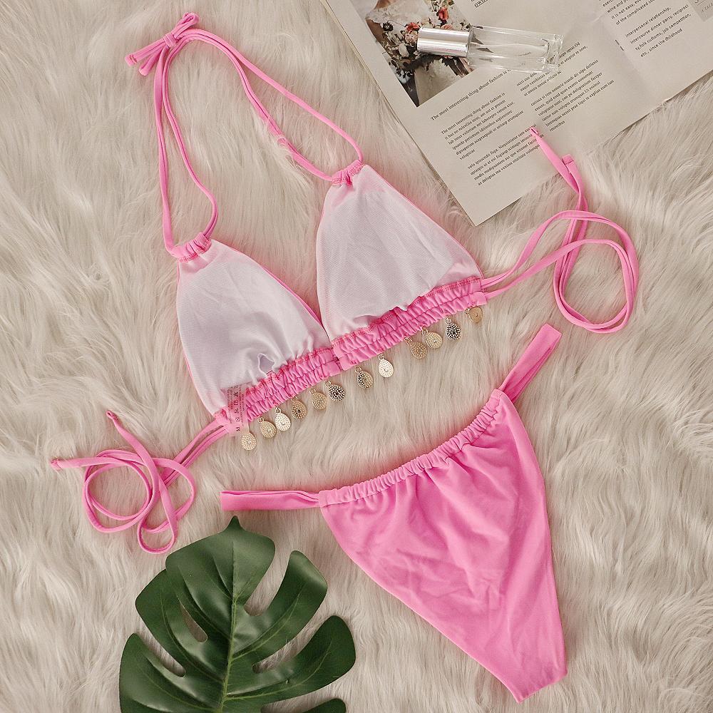 Two Piece Swimsuit Women Pink Bikini Swimsuit with Gem Embellished