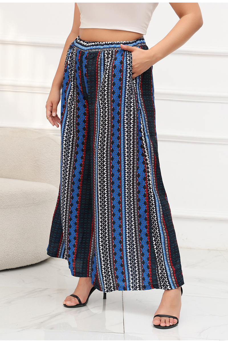 Wide Leg Pants Bohemian Striped Blue Elastic Waist Pants Seaside Vacation Beach Pants