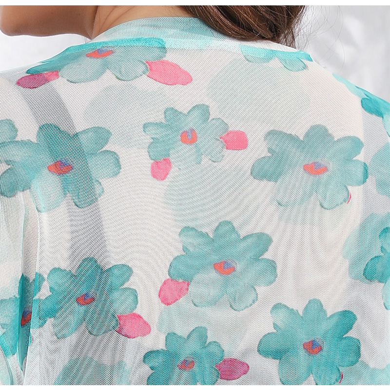 Women Lightweight Casual Printing round Neck Long Sleeve Top Ice Silk Net Yarn Cool T shirt
