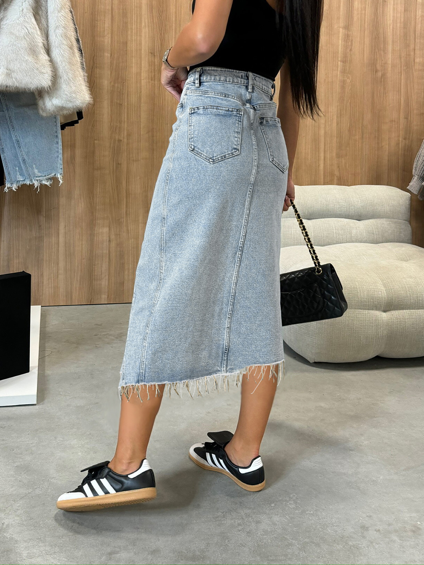 Women Oblique Waist Slit Frayed Edge Cross Stitching Asymmetric Denim Skirt